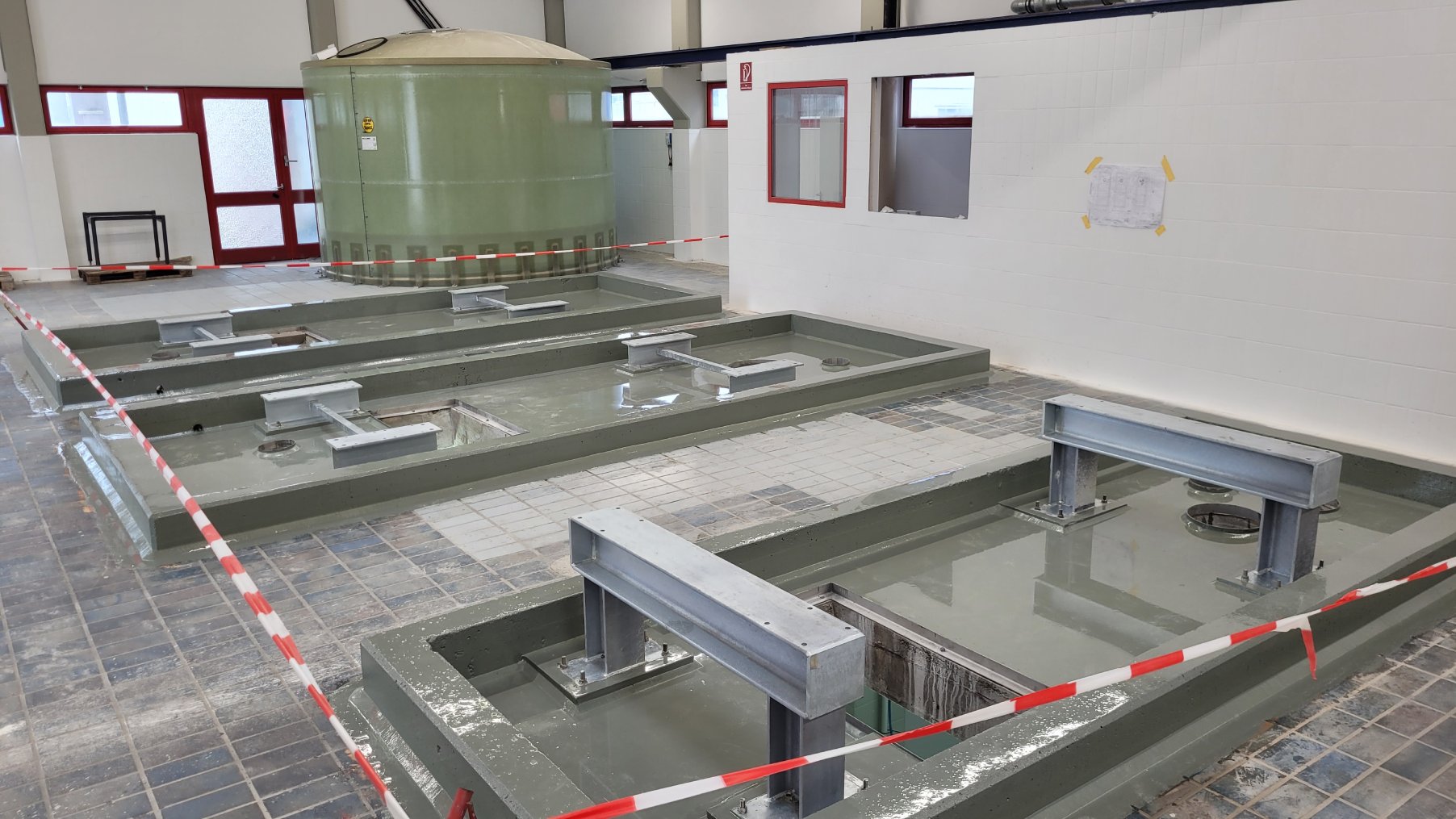 In der Schlammentwässerung konnten die Arbeiten am Gebäude vorübergehend abgeschlossen werden. Die Wände sind gestrichen und die neuen Fundamente durch die Firma floorartist beschichtet.