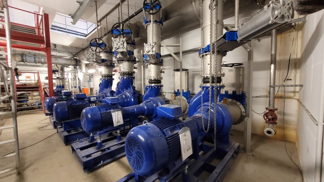 Die Montagearbeiten schreiten voran. Im laufe der letzten Wochen wurden alle Pumpen, Armaturen und Rohrleitungen in den Pumpenkeller eingebracht, ausgerichtet und installiert. Die Größe der Aggregate stellte hierbei eine Herausforderung dar.