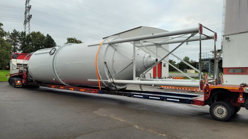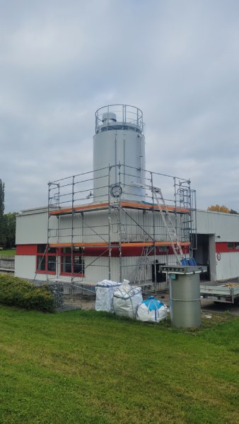 Inzwischen konnte mittels einem Sondertransport das Neue Lagersilo für die Aktivkohle angeliefert und eingebaut werden.